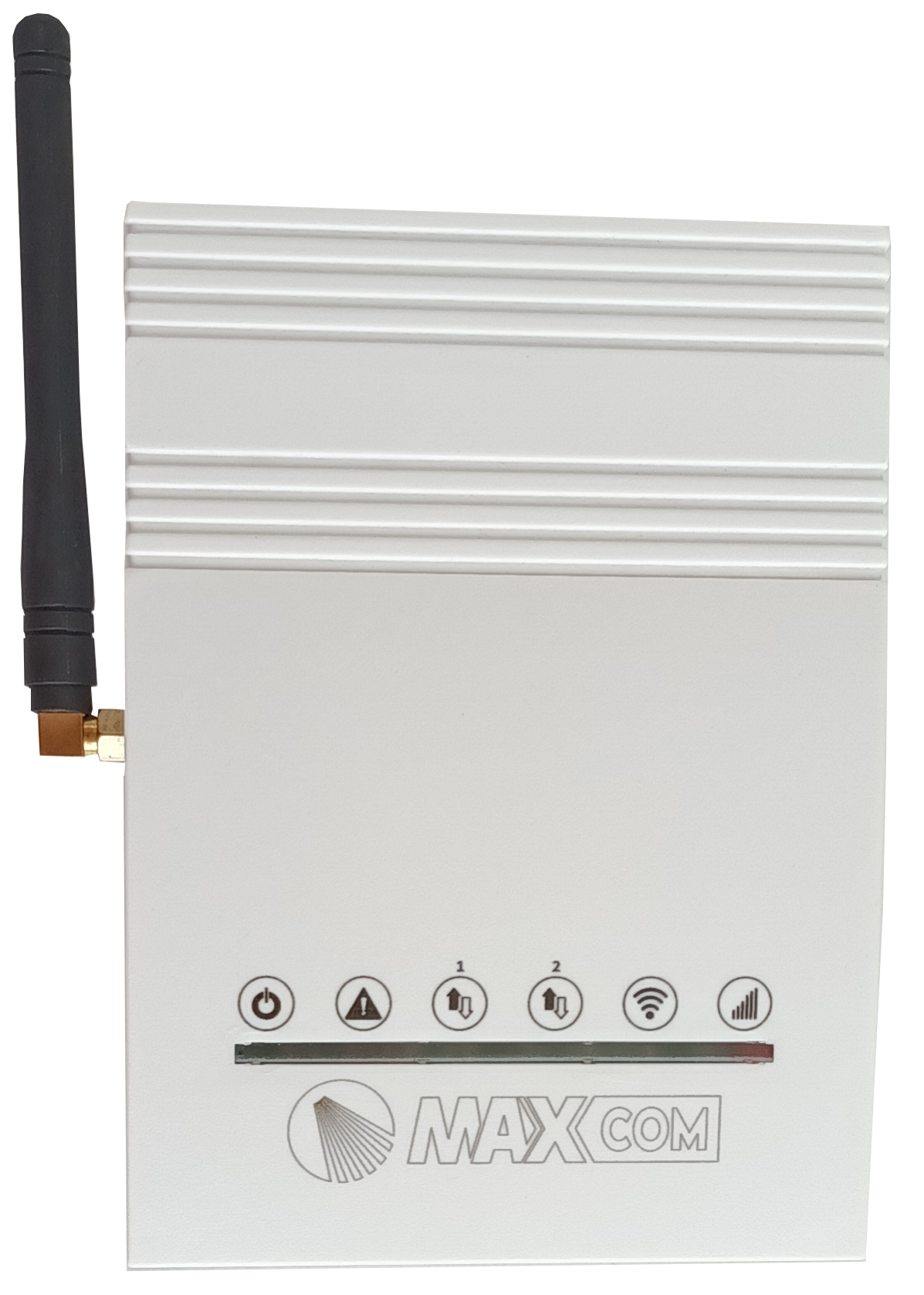 Comunicador GSM Maxcom Quad Band. Configuração rápida e fácil com mensagens SMS. Com bateria de Li-ion incluida para backup e monitorização de linha PSTN.Protecção anti-sabotagem